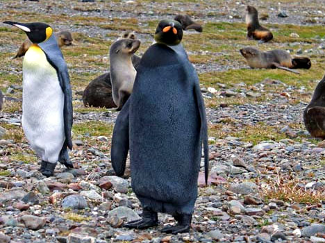 While multicolored birds will often show some variation, Dr. Baker explains that what makes this all-black King Penguin so rare is that the bird’s melanin deposits have occurred where they are typically not present — enough so that no light feathers even checker the bird’s normally white chest.