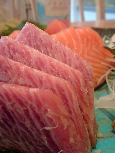 3. Then took both of my Precious Happies to the newly discovered Japanese market near by. Oh how I love love love this market! It has a variety of fresh seafood that astounds and delights and that only Japanese Markets can provide. Bought a slew of sashimi products to delight the DH for dinner: tuna, salmon, yellow-tail, ikura, geoduck, and the most treasured of them all–blue fin ohtoro at $69.99/lb! Total for sashimi = $45 of yummy goodness! Only complaint is that there was no uni to be found. Other than that, we got a two person feast for under fifty bones. And they even provide FREE ice for all your seafood cooling needs! Oh how lovely! That’s some Precious Sashimi Happy right there folks!
